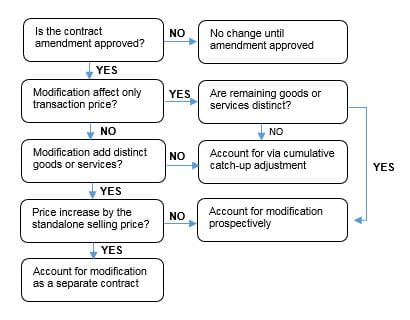 One of the more confusing new concepts in the ASC 606 framework is the notion of contract modifications. These are likely to be confused with the definition of performance obligations as a result of the broad factors involved in a contract modification. Accounting for contract modifications depends on several factors, as illustrated in the following table: