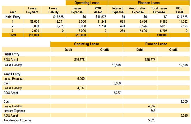 Below is an example to illustrate the accounting for an operating and finance lease: