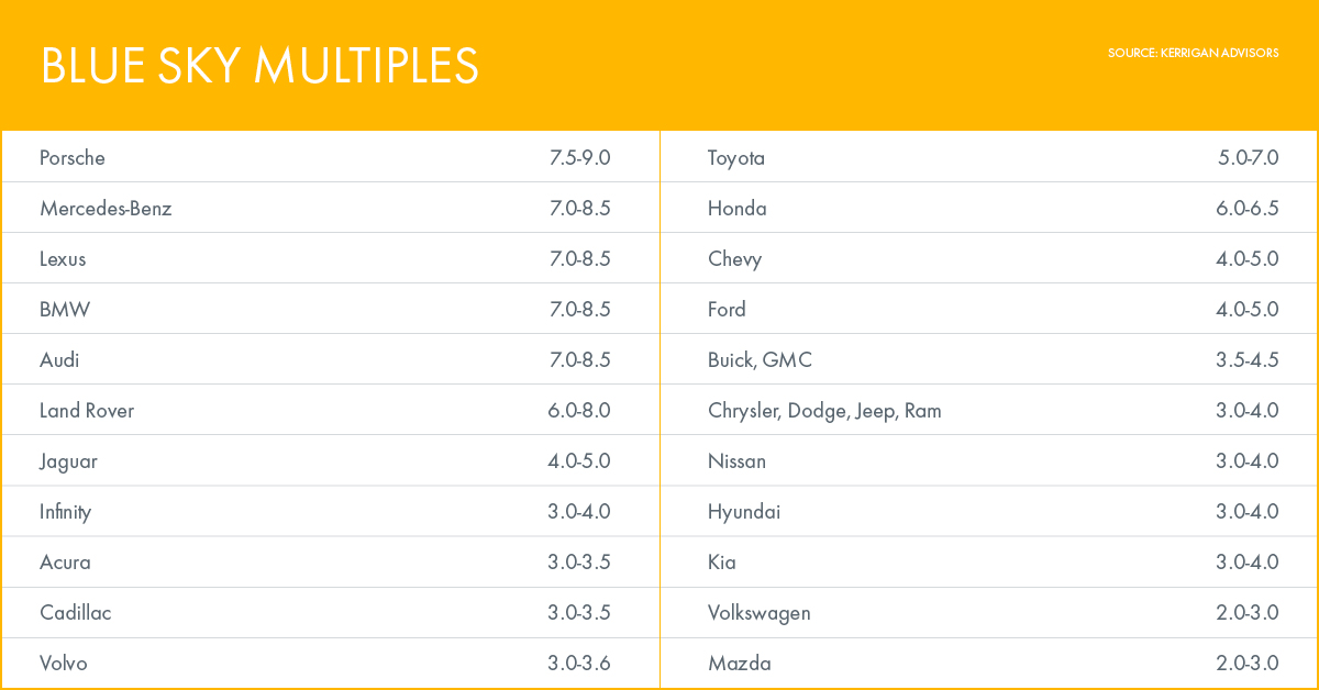 A great takeaway from this is that if you’re a seller of a store that’s underperforming, don’t be pessimistic about its value. A store like this brings a high multiple of earnings because a new buyer comes in with their own management and costs, so it’s starting with a lower multiple. We consistently see dealerships that are losing money gain value by attracting buyers who see the potential of what they can do with the store.