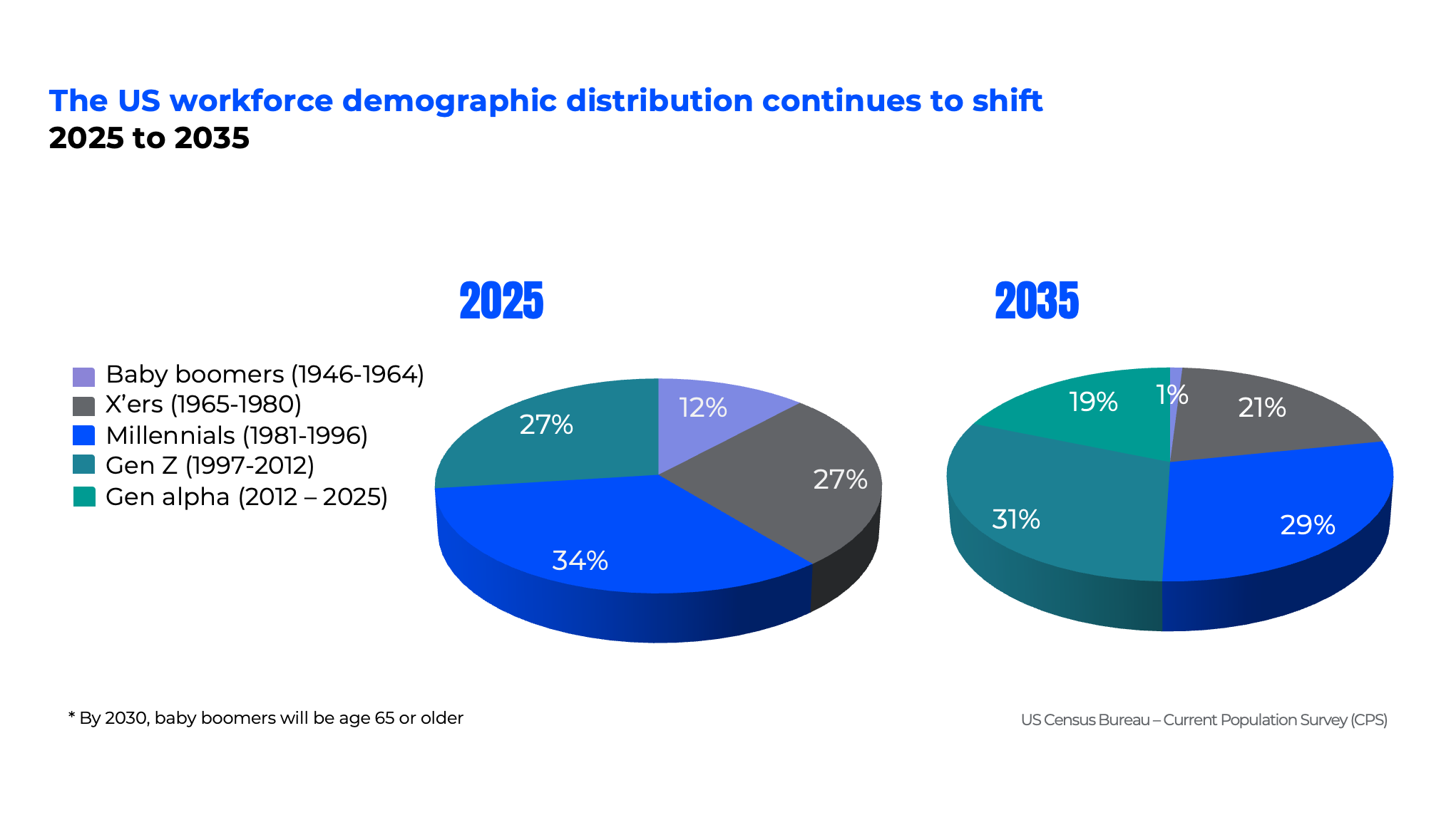As you conduct your succession planning, consider how changing generational demographics will affect your organization. Here’s what’s projected to occur over the next decade: