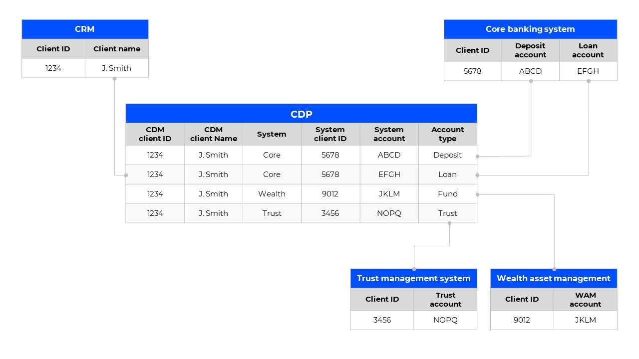 A customer data platform (CDP) is software that allows financial institutions to unify client data from multiple systems. It helps them effectively map all account activity, so that they have a more holistic understanding of their clients’ needs and behaviors.